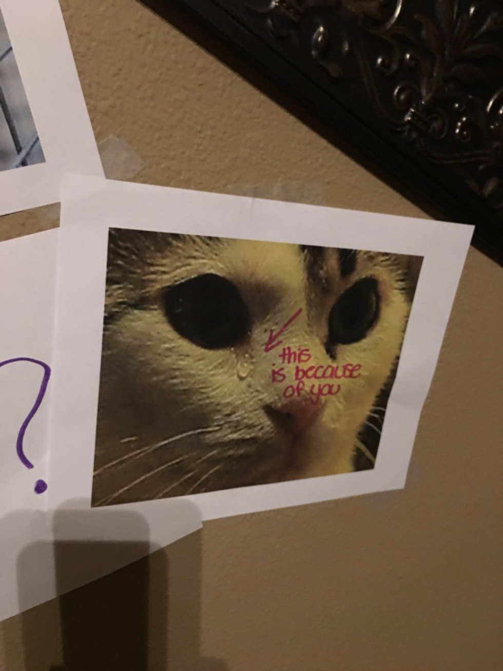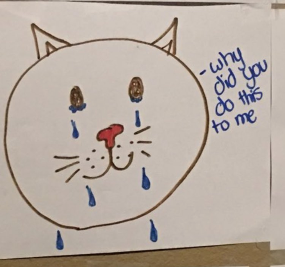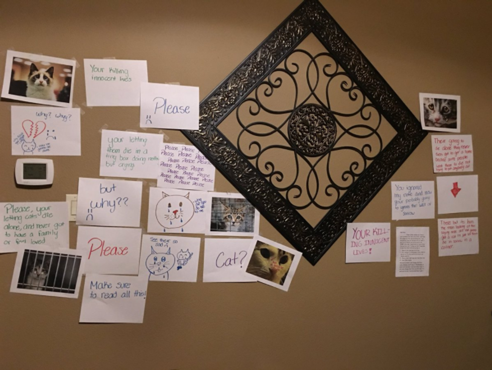 Well, one 13-year-old girl recently went above and beyond to convince her father that she needed her very own cat. But she didn't do it by trying to convince him that she was mature and responsible. She shamed him into feeling bad by creating a "wall of sorrow," featuring photos and drawings of sad cats, and appealing to his sense of guilt with notes saying things like, "Your [sic] killing innocent lives."