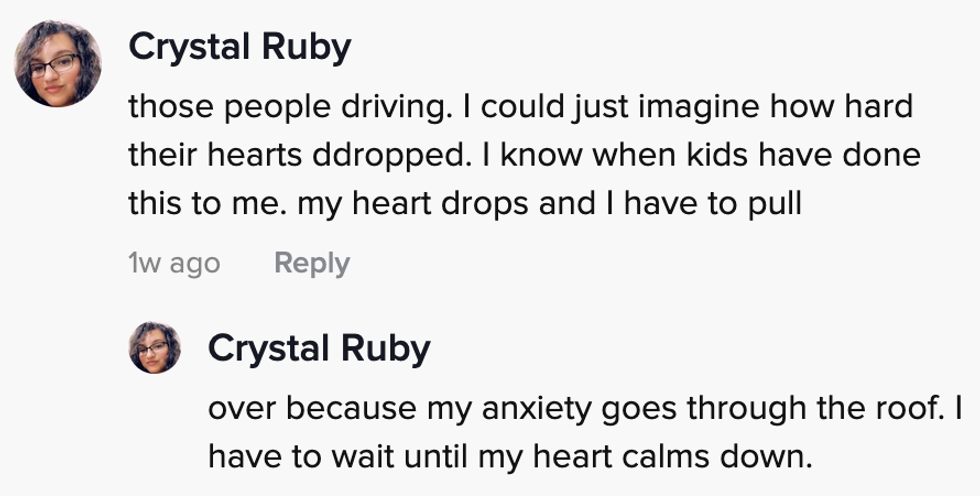 "I could just imagine how hard their hearts dropped. I know when kids have done this to me. My heart drops and I have to pull over because my anxiety goes through the roof."