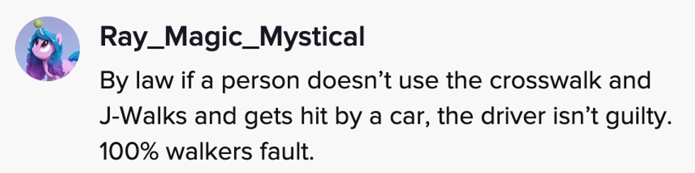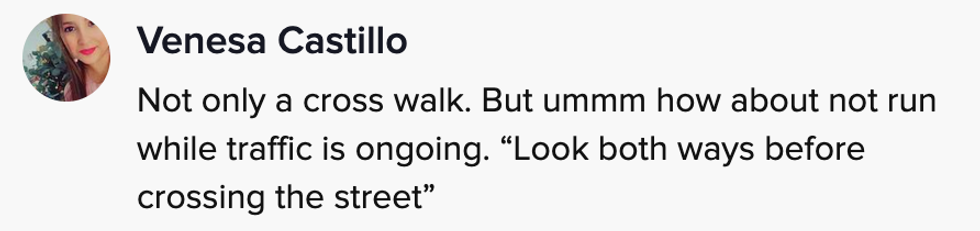 For the comments arguing there was no visible crosswalk, this TikToker suggested the old "look both ways before crossing" should have been considered.