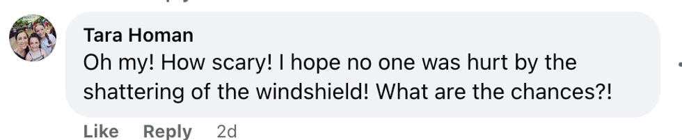 They received a most unwelcome Valentine in the form of a runaway tire from a passing pickup truck which smashed into their windshield.