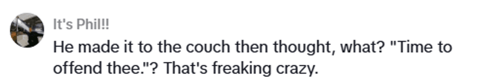 They went into her apartment together and sat down on the couch, and he began to comment on her various trinkets and possessions.