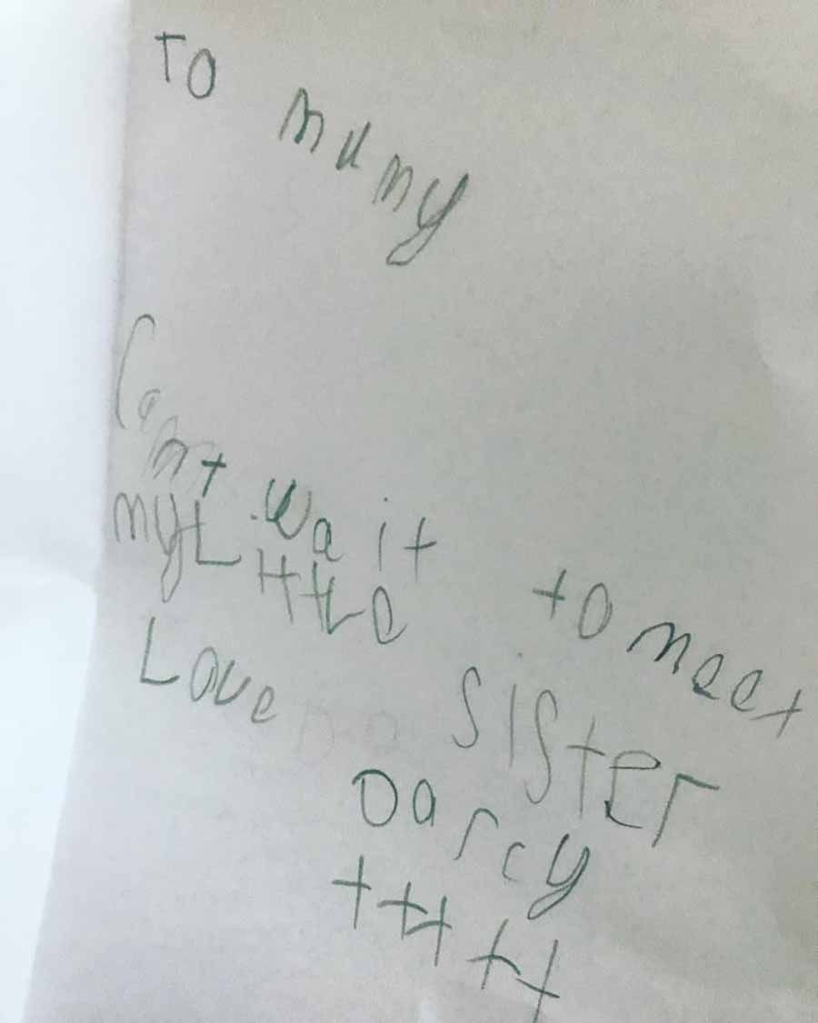 When they first told her she was going to have a little sister, Darcy was so excited she went straight to school and told all her teachers.