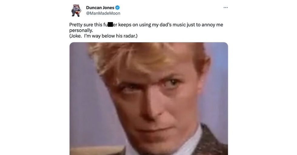 \u201c@ManMadeMoon Pretty clear no one there has paid attention to any lyrics beyond the title.\u201d— Duncan Jones (@Duncan Jones) 1680657192