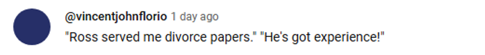 In Season 9, Episode 16 of Friends, "The One with the Boob Job," Ross even nicknames himself "The Divorcer" and then "Ross: The Divorce Force" while talking about how much he loved marriage despite his frequent departures from it.