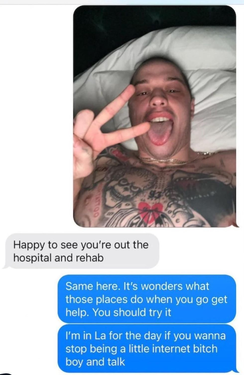 Pete Davidson\u2019s friend, Dave Sirus, shares text conversation between between Pete and Kanye West.pic.twitter.com/lxAf4xhyd0— Pop Crave (@Pop Crave) 1647193433