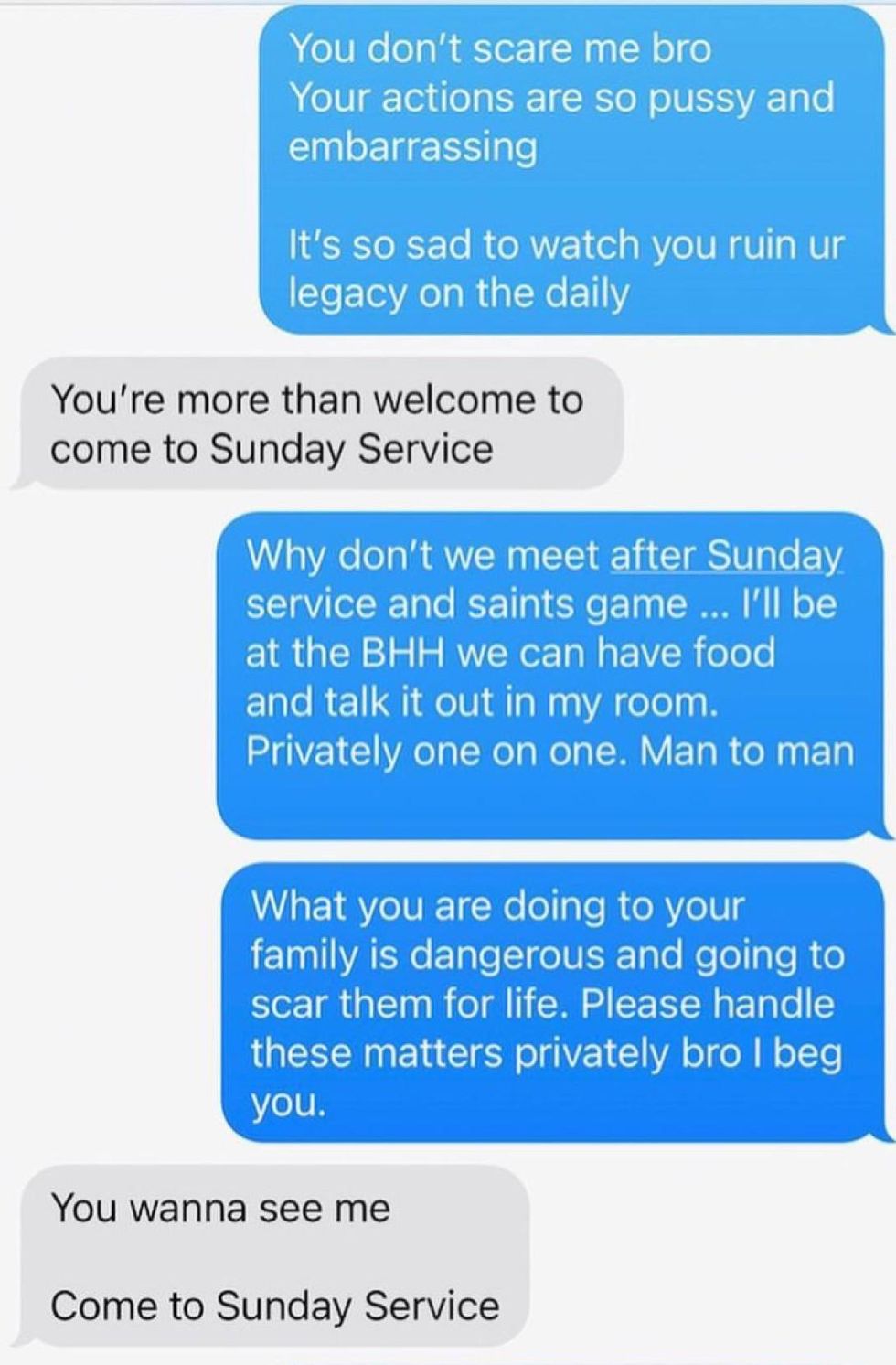 As reported by Today, Ye first took to Instagram to complain about Davidson sending him "antagonizing" text messages.