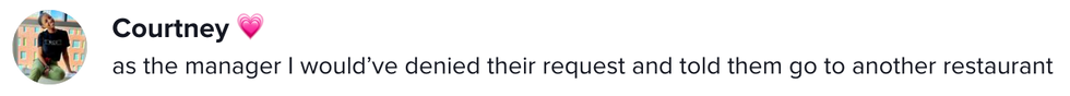 Other people commented with things they would have done in her stead or what they would do in their roles in restaurants.