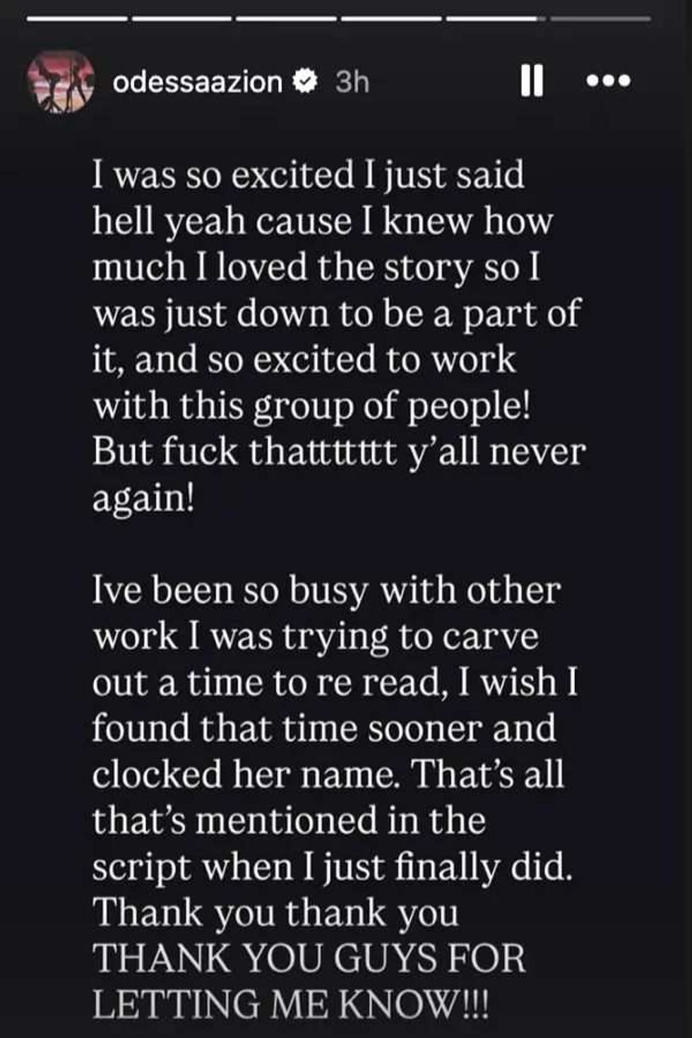 “Guys!! I am with ALL of you and I am NOT doing this movie… F--k that. I’M OUT. lemme make myself clear… THANK YOU guys for bringing this to my attention. I AGREE WITH EVERY SINGLE ONE OF YOU! This is why I love you guys.”