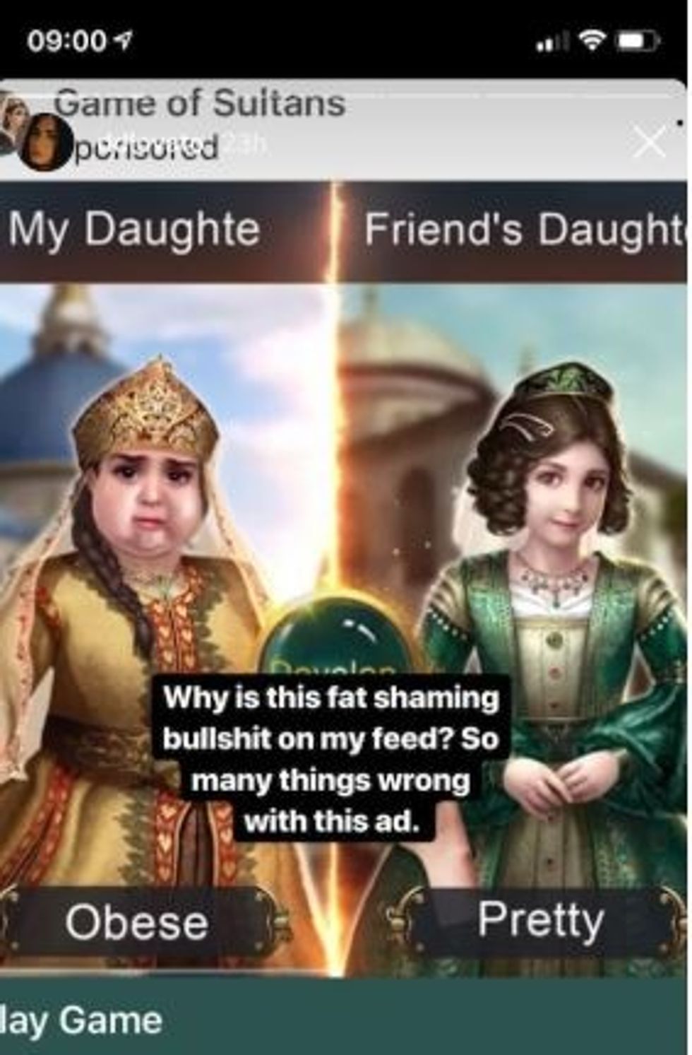 "Why is this fat shaming bullsh*t on my feed? So many things wrong with this ad."