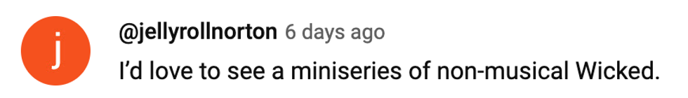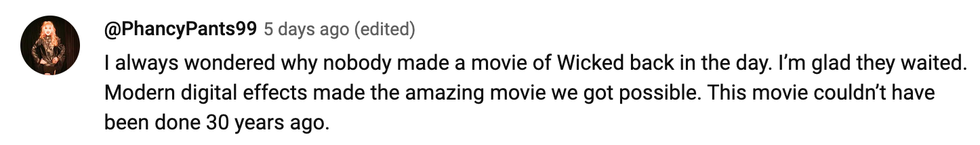 She went on to talk about how maybe back then wasn't the best time for the production, clearly harboring no jealousy over the trajectory of Chu's adaptation of the musical this year.
