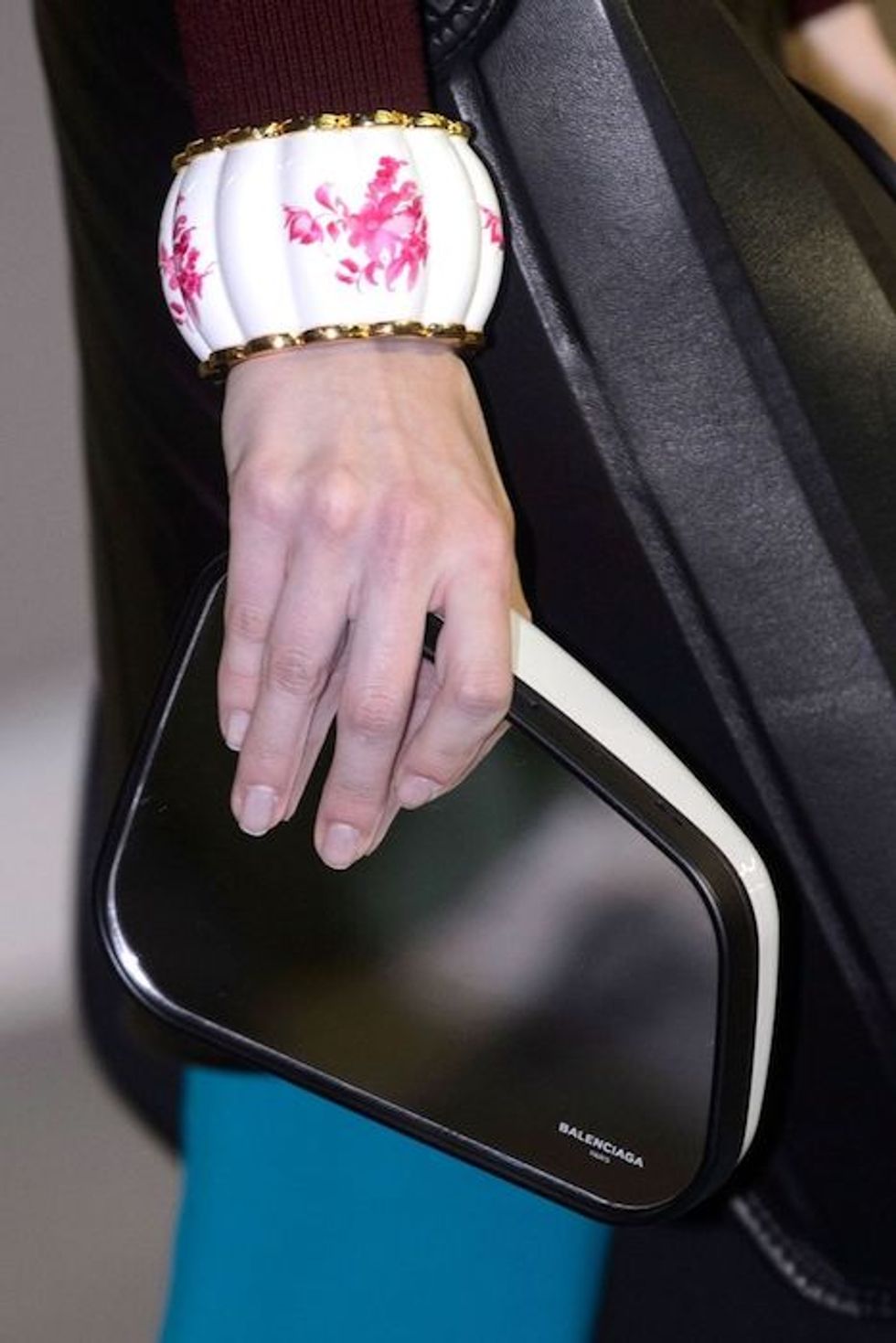 Gvasalia didn't stop with the dresses. His automotive-chic theme continued with the accessories, including the use of side-view mirrors as, what else? Clutches.