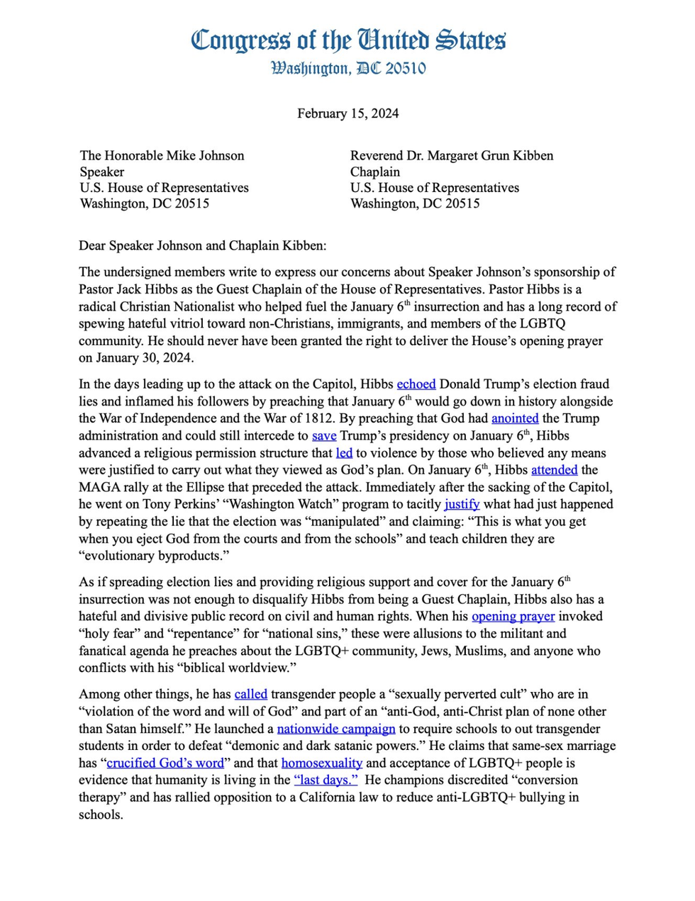 House Dems also noted that another reason why Hibbs should have been disqualified from serving as a Guest Chaplain was for his anti-trans and anti-LGBTQ+ views.
