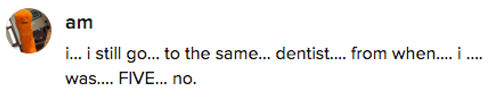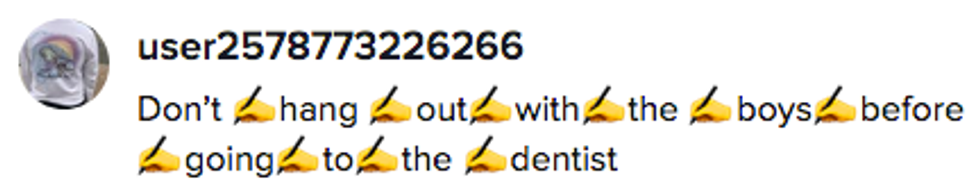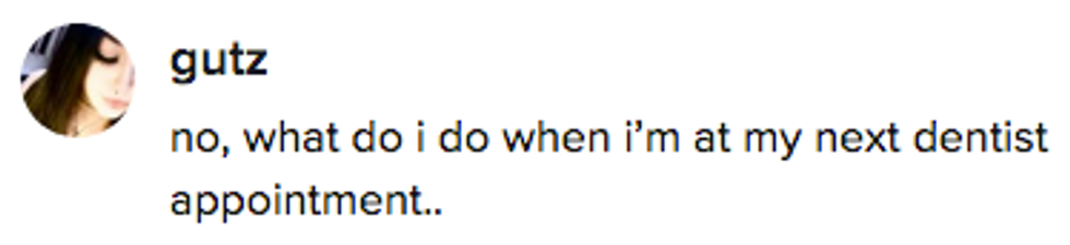 "Just found out the dentist can find out whether someone has given [head] or not I'm screaminggggg"