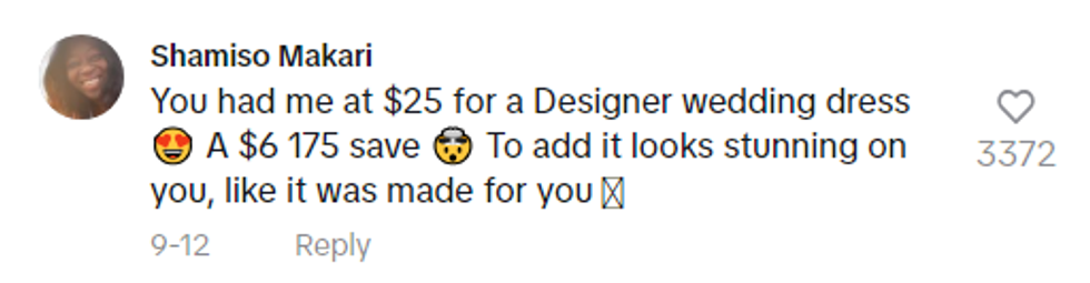 She went to examine the dress and discovered it was an incredibly beautiful wedding dress that appeared to be in her size. At only $25, it was an easy purchase decision to make.