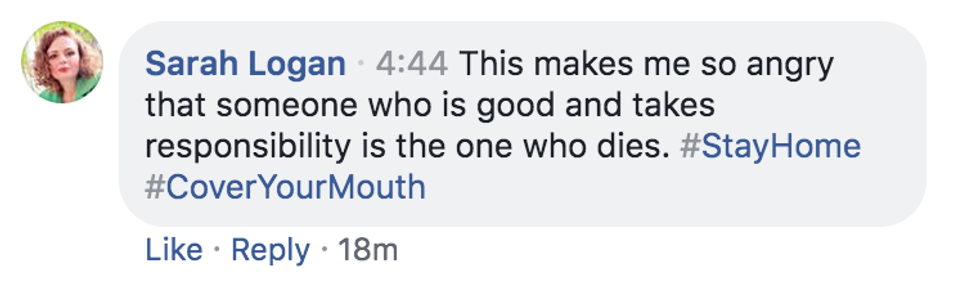 Duggan said that Hargrove's story is proof that people need to take the health crisis seriously: