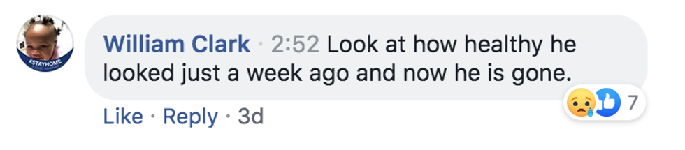 Upon the news of his sudden death, people began to comment on Hargrove's Facebook post.