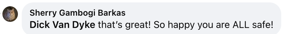 In a separate post, Van Dyke shared an update informing fans that the couple and all their furbabies had returned to their "unharmed" home.