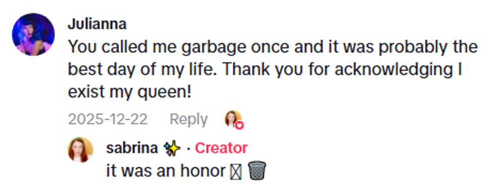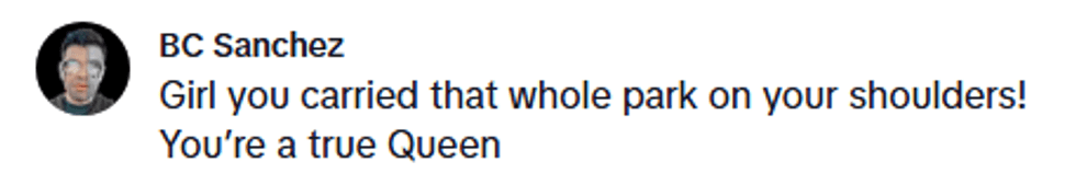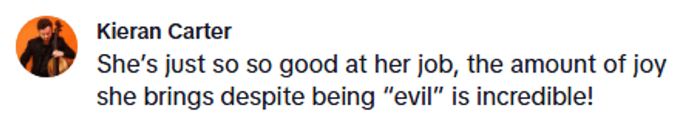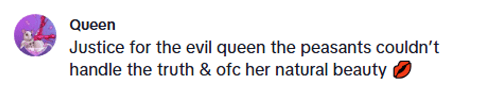 The rest of the video was then a montage of moments of her as the Evil Queen that had appeared on TikTok since 2019, including her throwing insults and flipping her magnificent cape over her shoulder.