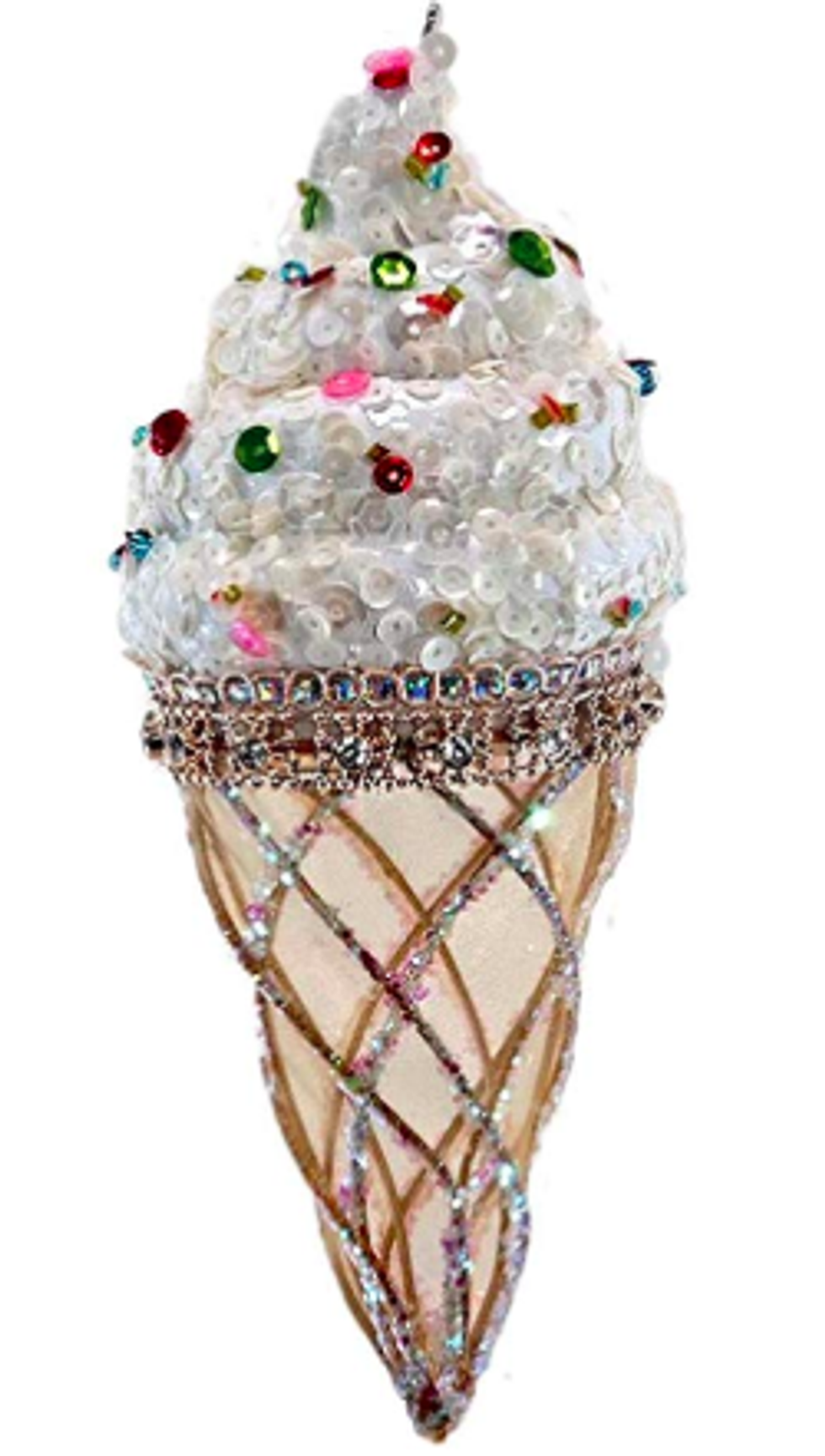 Ice cream season is ending, but the holiday season has just begun. Celebrate sweet treats with this fabric and sequin Katherine's Collection Sweet Ice Cream Cone Ornament available here.