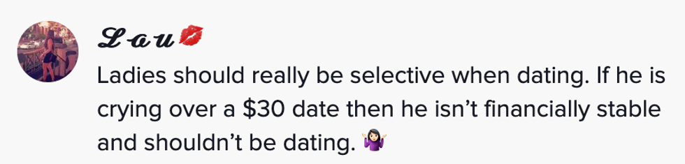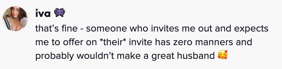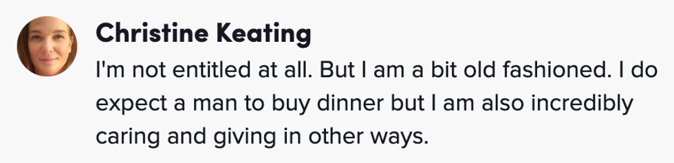 "As I said in the video, men will gladly pay - the payment isn’t the issue. The issue is when women perceive the payment as an obligation as opposed to a kind gesture."