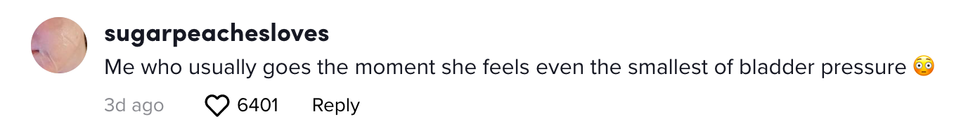 Several TikTokers took it as an opportunity to share they too are guilty of urinating "just in case", with some unsure if they'll be able to correct this.
