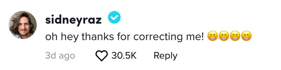 Included among those thanking Dr. Jeffrey-Thomas was the fellow TikToker whom Dr. Jeffrey-Thomas corrected at the beginning of the video @sidneyraz.