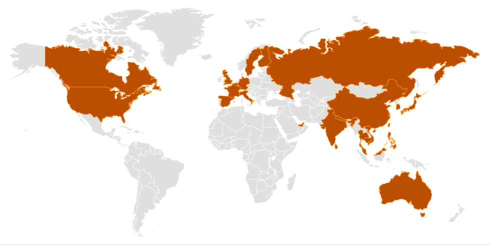 This CDC map of countries with confirmed nCov cases shows that, indeed, the virus has hit those tropical zones.