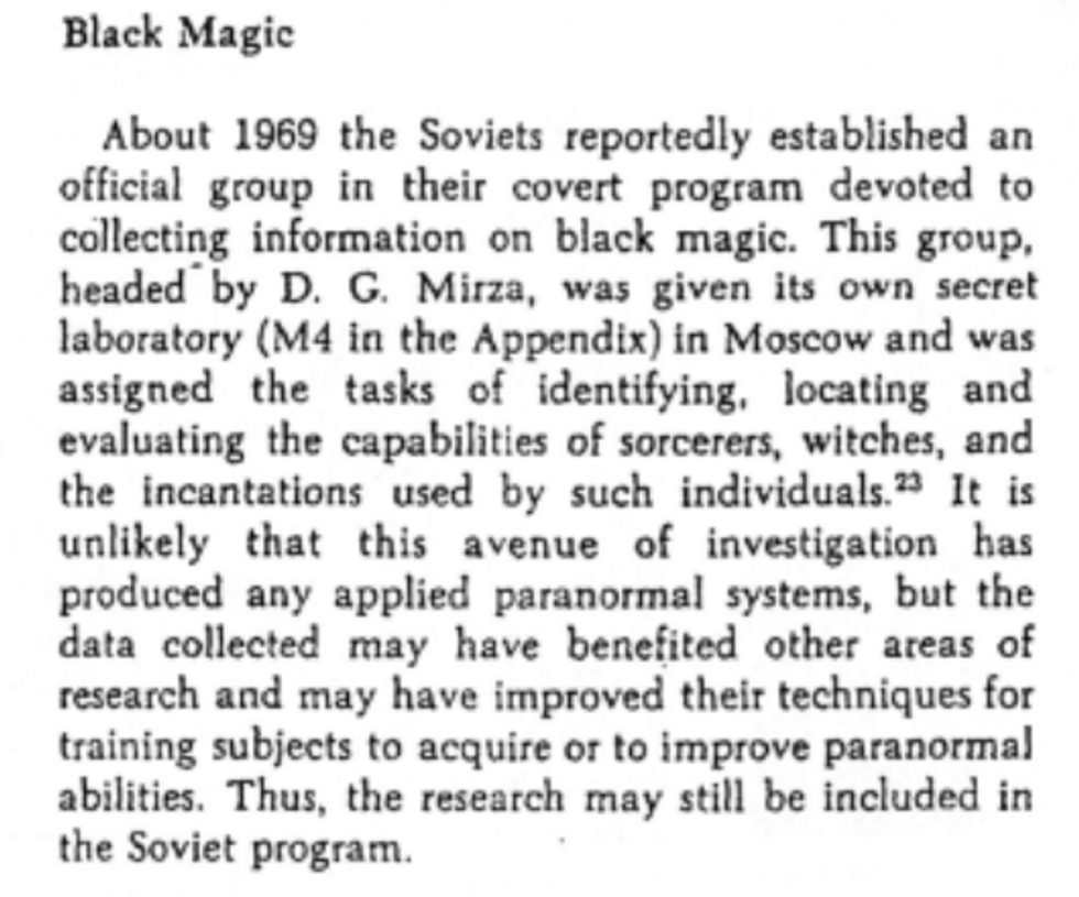 "About 1969 the Soviets reportedly established an official group in their covert program devoted to the collecting of information on black magic."