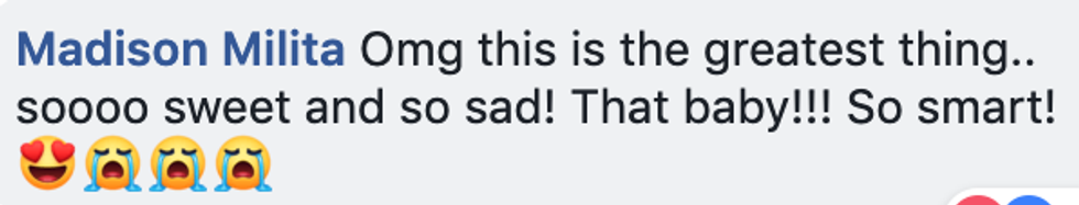 "So Hannah and I were watching the Lion King while Luna played wildly with her toys. But right as Mufasa falls to his death, she stops and turns to the TV to watch. To see her crying at the TV was the sweetest thing I think I've ever seen."