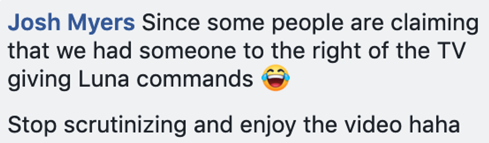 Apparently, someone insisted that there must have been a human coaching Luna, so Josh posted another video from a different angle.