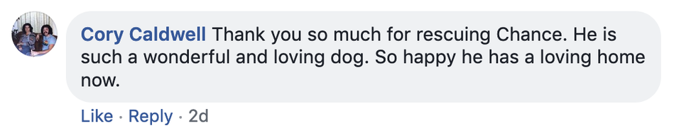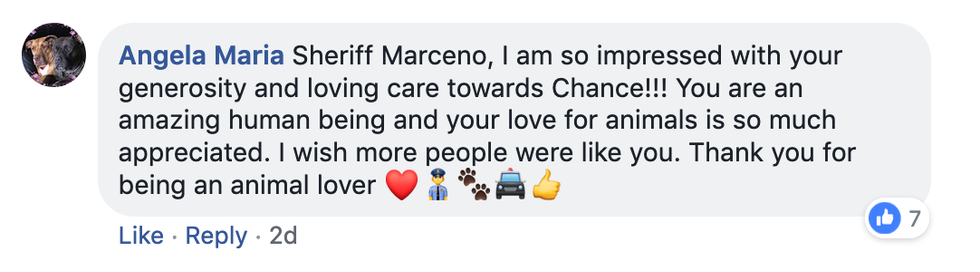 The Sheriff's Office Facebook post was flooded with compliments for rescuing Chance.