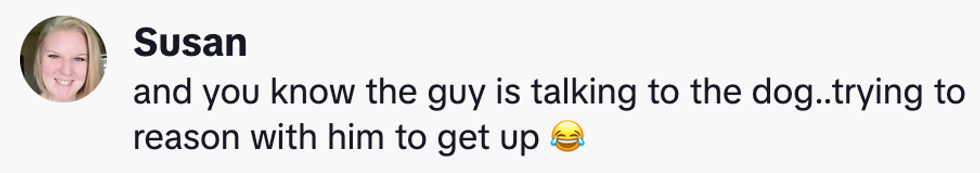 The owner was seen trying to get the stubborn pup to move, but it didn't budge as cars were cruising by to find parking.