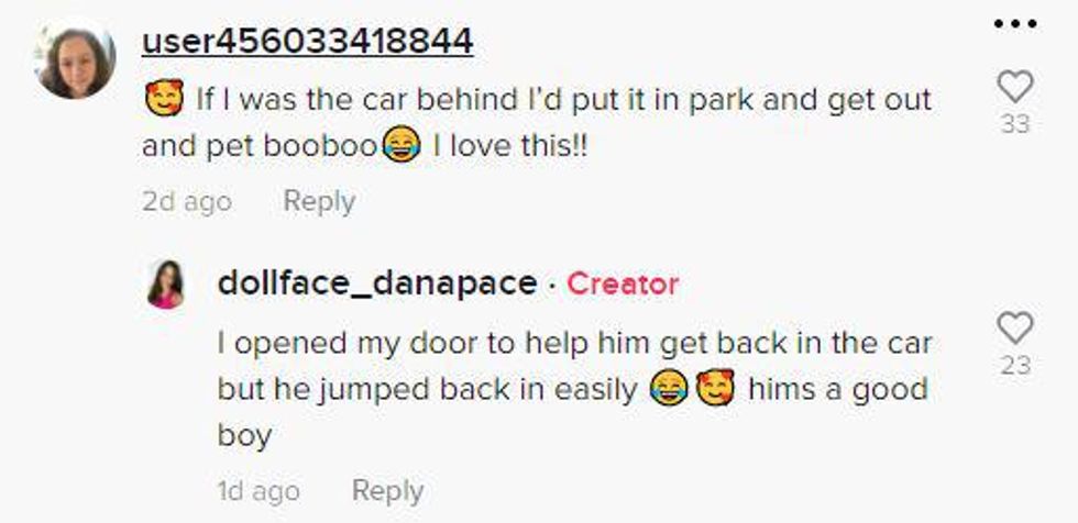 Not seen on camera was the person who took the video attempted to help Booboo the dog get back in their car.