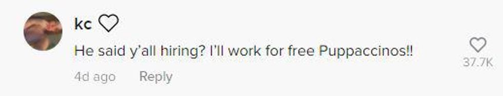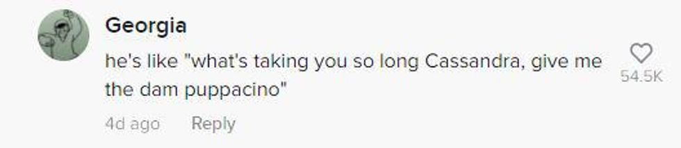 "When the puppoccino calls to you...the dog's name is BooBoo."