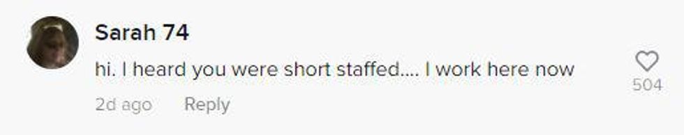 The dog might have been excited to see the Starbucks worker because they know the puppoccino is on the way.