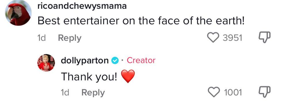 In the midst of all of the love—in her trademark kind fashion—Dolly managed to keep up with comments on her videos, responding to many from even the little guys and gals.