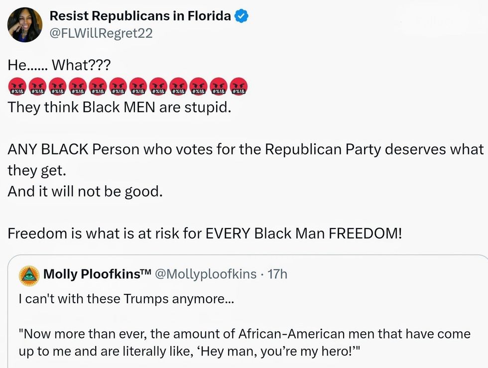 @RonFilipkowski We're to believe African American men call Don Jr their 'hero' for exactly what, his blatant racism? Right Don, tell us again how you don't want a Black pilot or doctor.— (@)