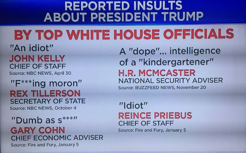 But the report is certainly nothing new. There is a long history of Trump's own close officials calling him a variety of insults and NBC News decided to put them all in one place on the air on Tuesday, with what anchor Hallie Jackson called their "insult list."