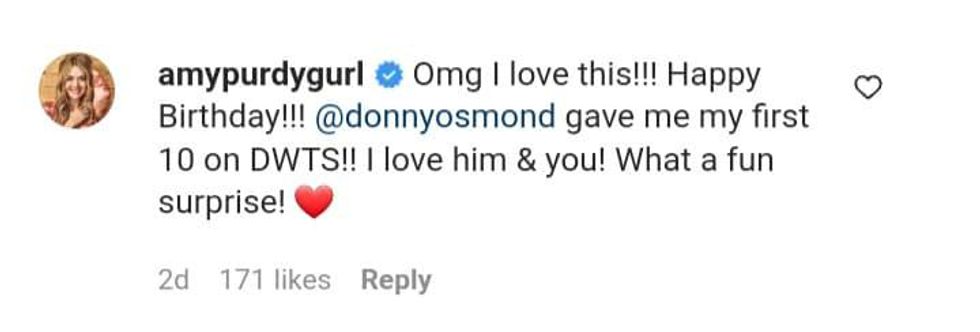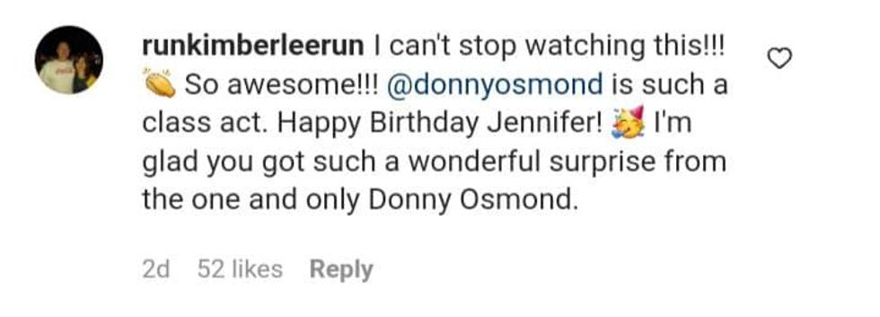 "My first (pre)birthday surprise was a doozy—the one and only, legend in his own time, object of my childhood adoration and devotion—@donnyosmond showed up to knock my purple socks off."