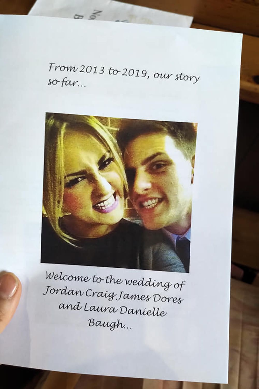 “Someone gave Laura an idea. They said, 'I don't know why you don't just get married and get it all done on the same day. That person was Lynn, Laura's mum. Well, now you're here to witness Laura and my dad taking that idea and rolling with it."