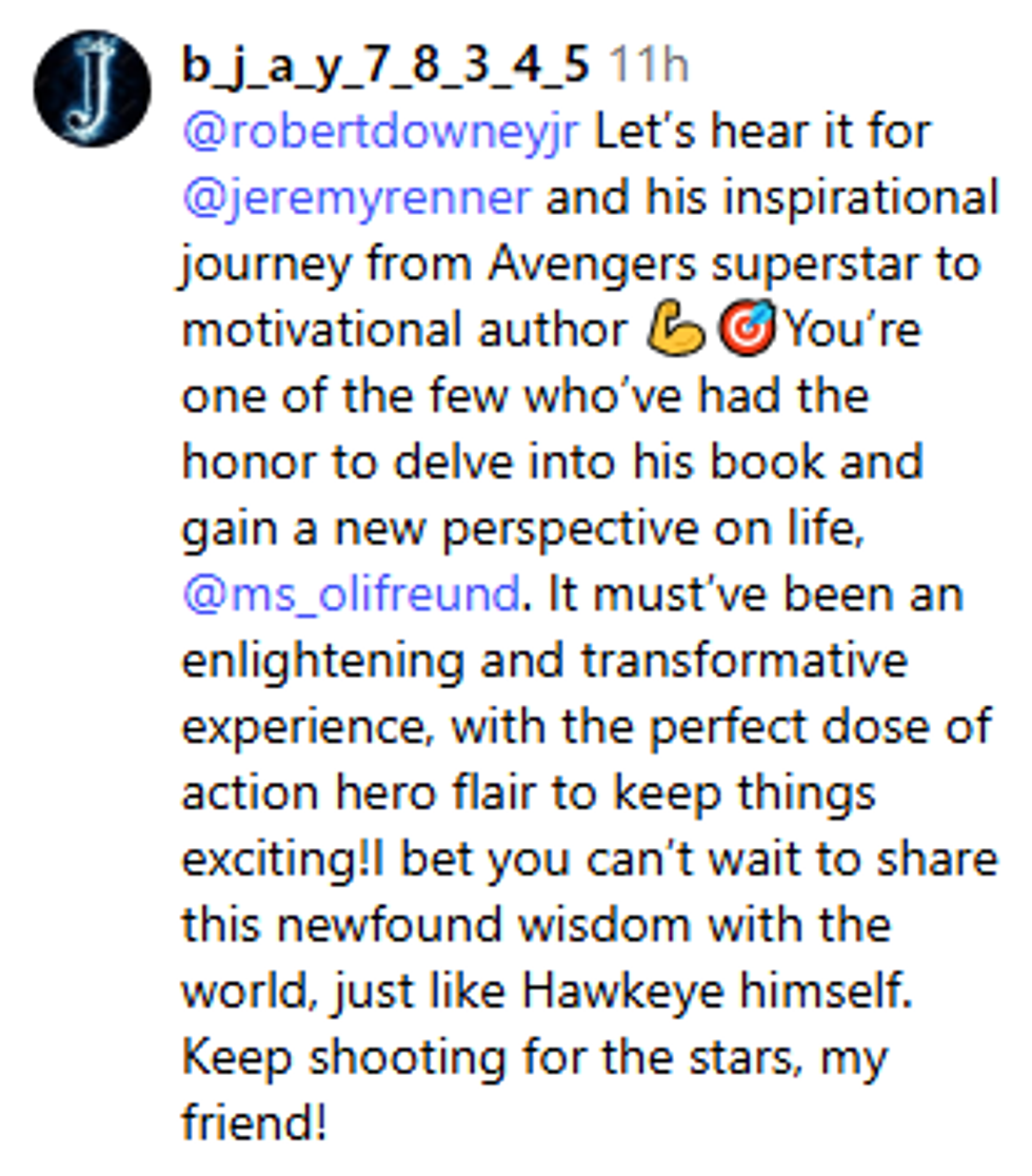 Even Renner thanked Downey Jr. for sharing his book with his fans.