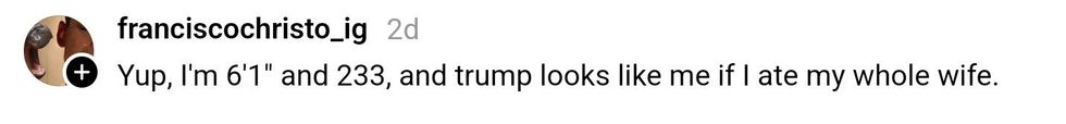 "That being said, they’re trying to tell me that Donald Trump is 6’3” and 224 pounds."