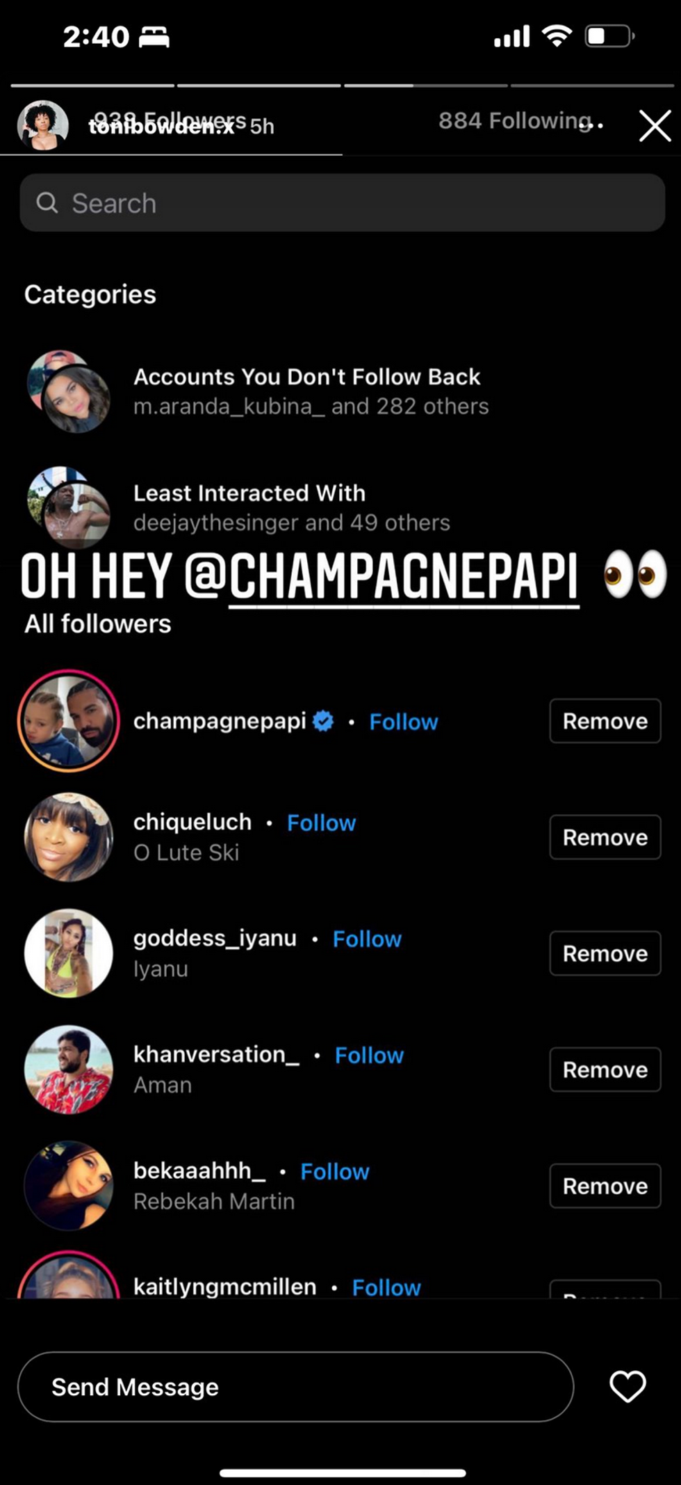 Bowden was amused by being "followed" by Drake, and she showed proof he started following her on the platform, just as he declared.