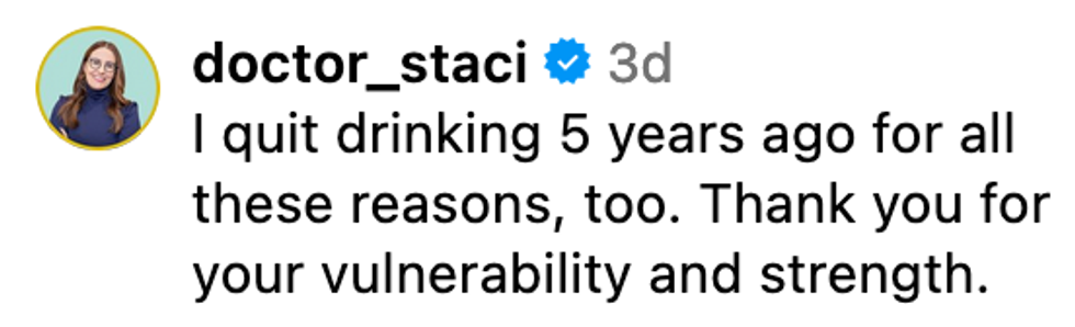 "You know, when you stop drinking, it’s not like all your problems go away. There’s a ton of work to be done. It’s a way to honor yourself and be consistent, and let the room in for other things.”