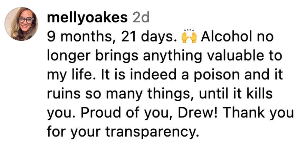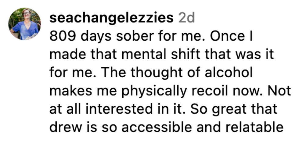 In an interview earlier this year, Barrymore revealed she began drinking heavily after her 2016 divorce and that her problem became so bad her therapist "quit on her." It's good to see how far she's come since then.