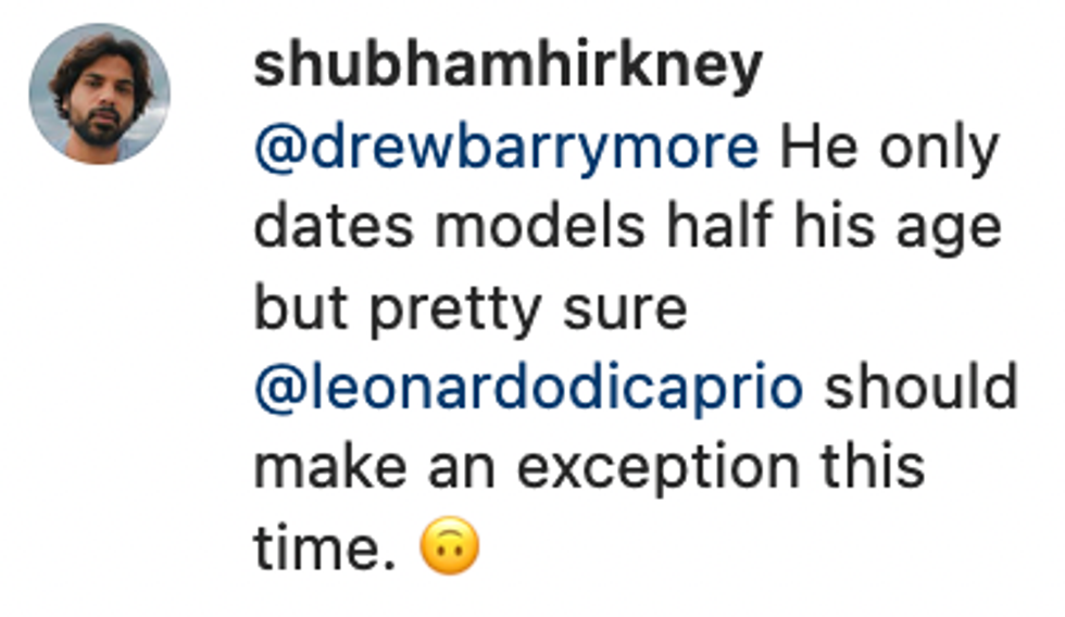 Barrymore slid into the comments of an Instagram post of DiCaprio's and left a thirsty message for her fellow movie star that has left fans of both stars absolutely screaming.