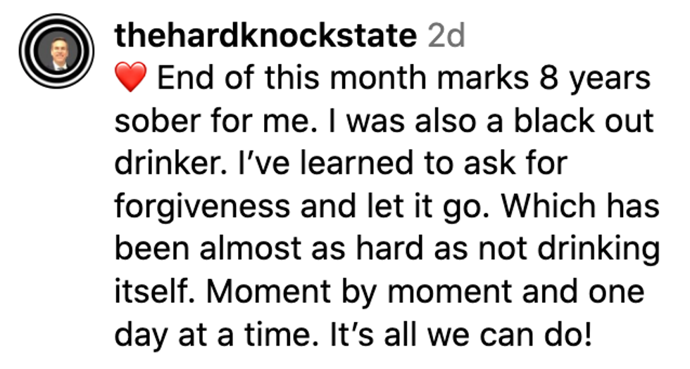 "There's a lot about substances in the film. I was shocked to realize that part of my journey that I was looking to find, the trauma inside of me and what is it about, a big part of it was I used to be a blackout drinker...[the film] was an extraordinary journey for me to forgive myself, because I've put myself in situations I shouldn't have put myself in. And I felt so much shame about that, and I haven't had a drink in 5 years."