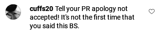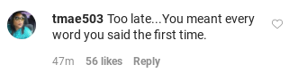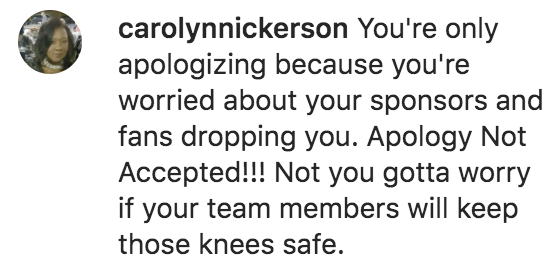 "You have no idea how inflammatory your words were... you are someone a lot of Black people respect... or respected*. I do agree that ignorance should be matched with an opportunity to learn and that you are an educated man... however, you need to make a direct statement and apology to the men you discredited and the people he represents."