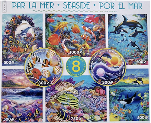 If you want to try your luck, you can get this Seaside 8-in-1 Multipack Puzzles - (2) 300 piece, (4) 500 piece, (1) 750 piece, (1) 1000 piece available here.