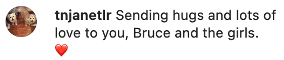"As my step-daughter @scoutlaruewillis told me, grief is the deepest and purest form of love. I hope you find some comfort in that too 💞"